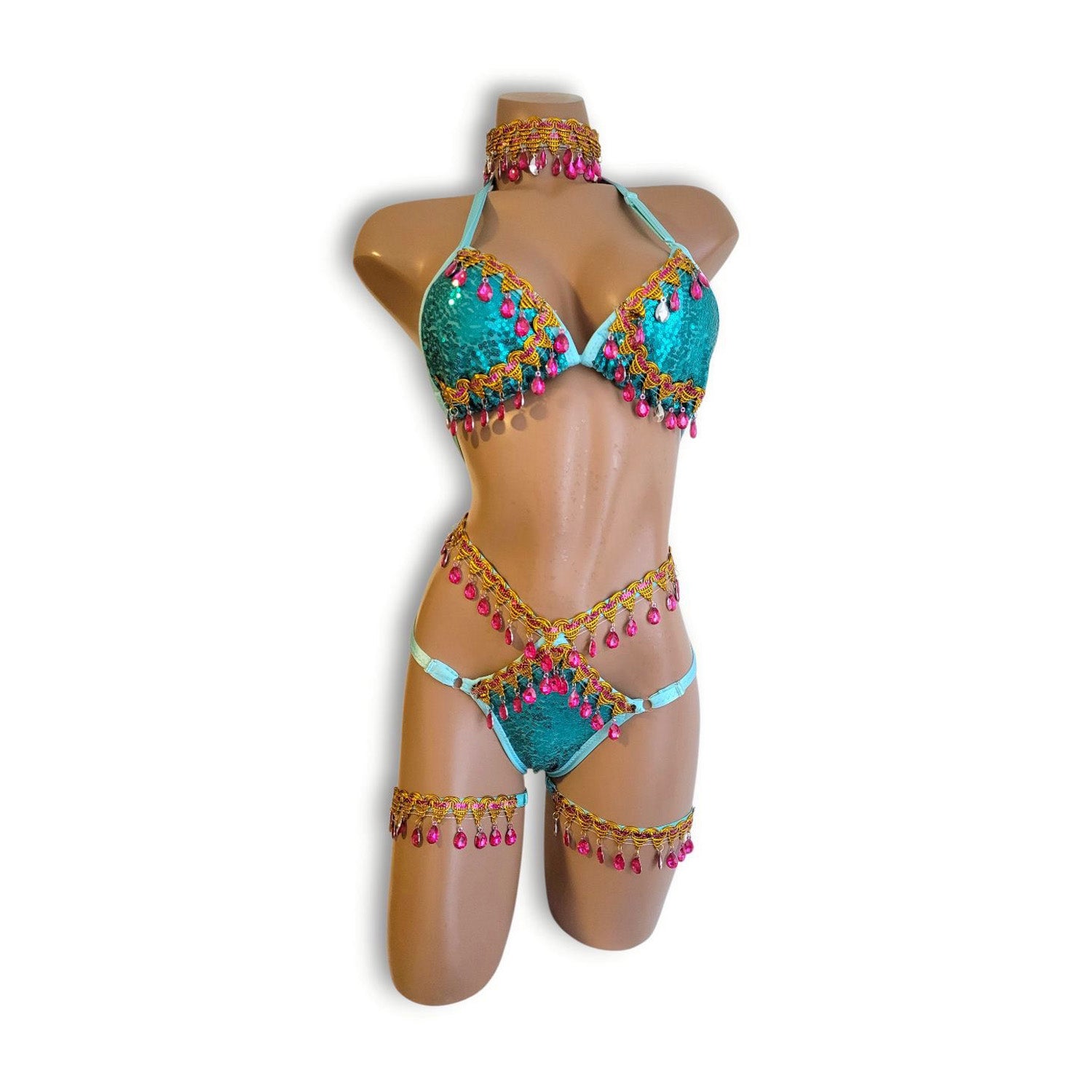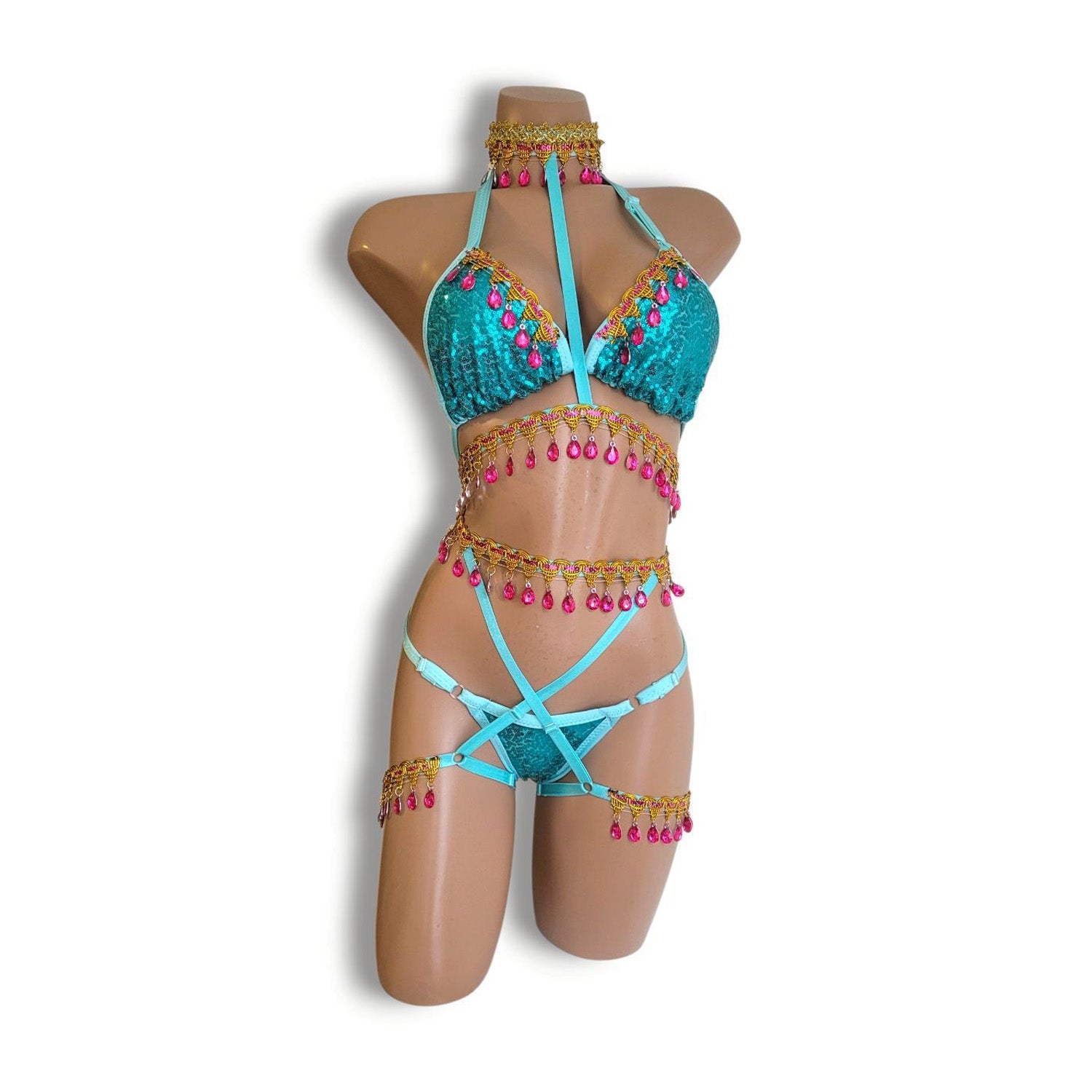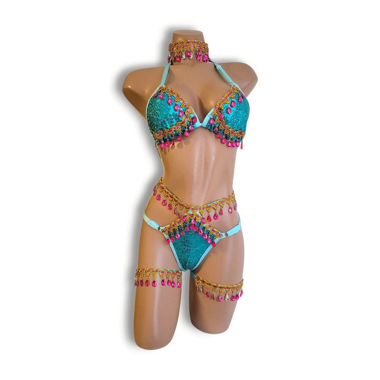 青ラインストーンビキニ
