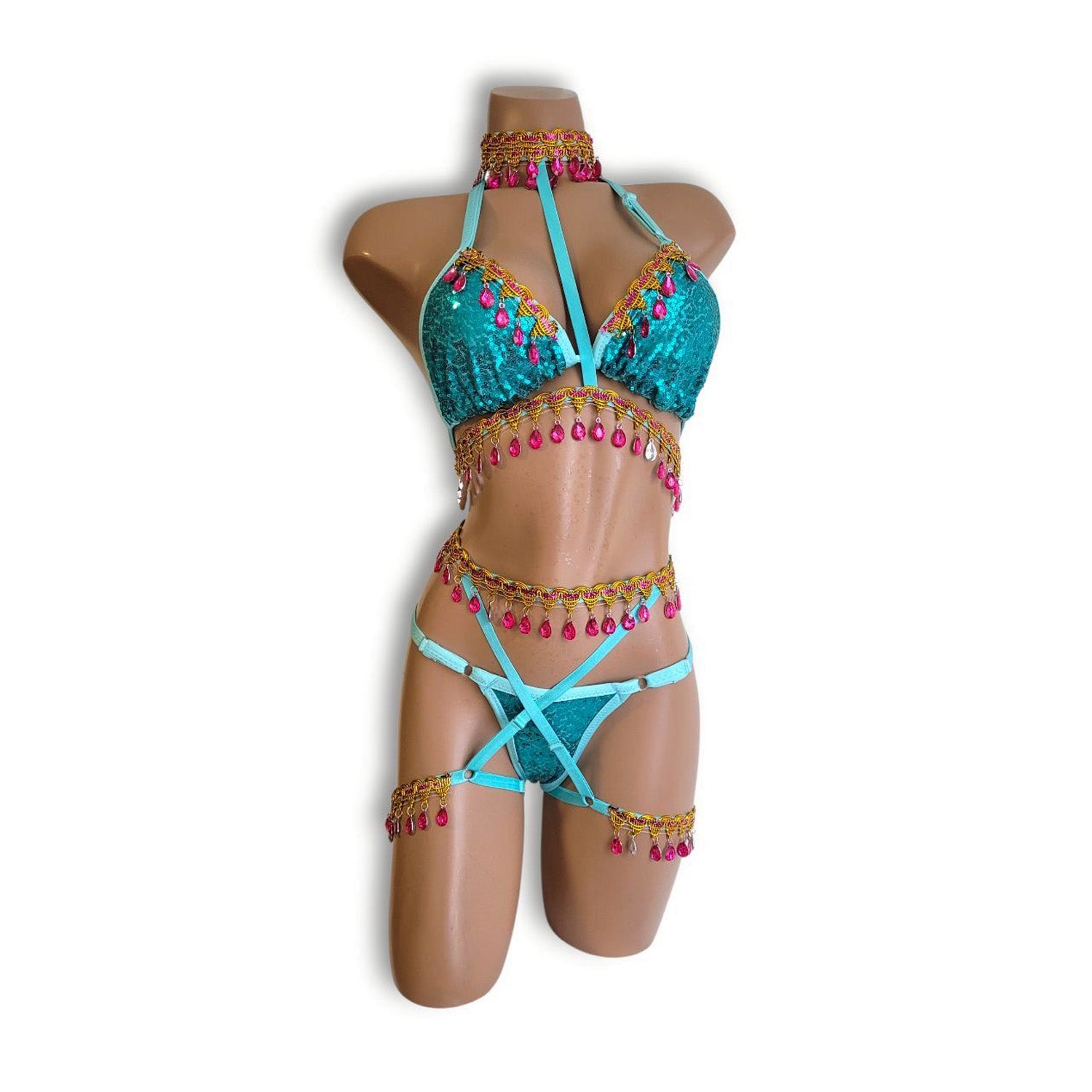 青ビーズフリンジビキニ
