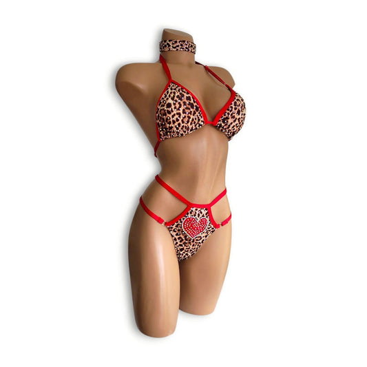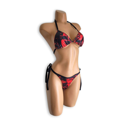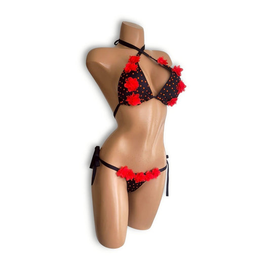 黒赤ストーンお花ビキニ