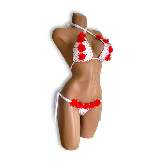 白赤ストーンお花ビキニ