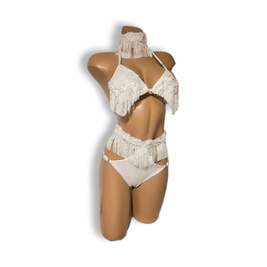 白お花フリンジハイウエストビキニ(ハーフバック)