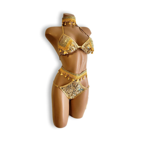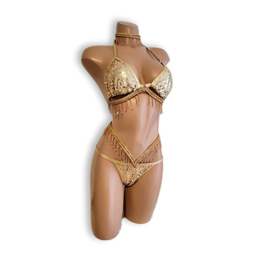 ゴールドフリンジハイウエストビキニ(ハーフバック)