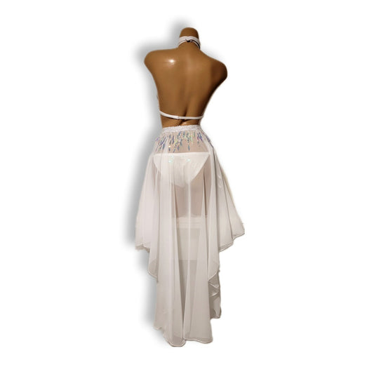 White Aurora Fringe Teddy & Skirt Set (Half Back)