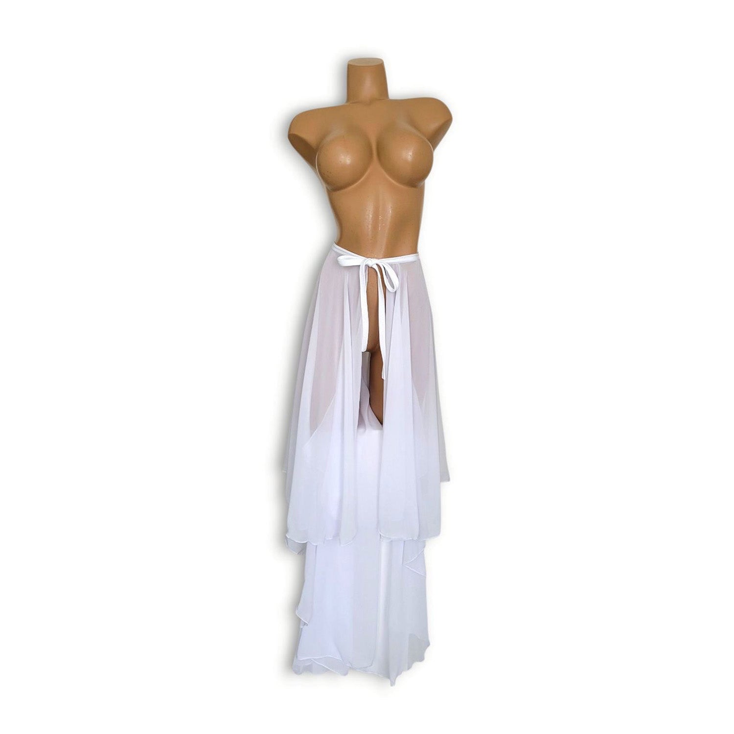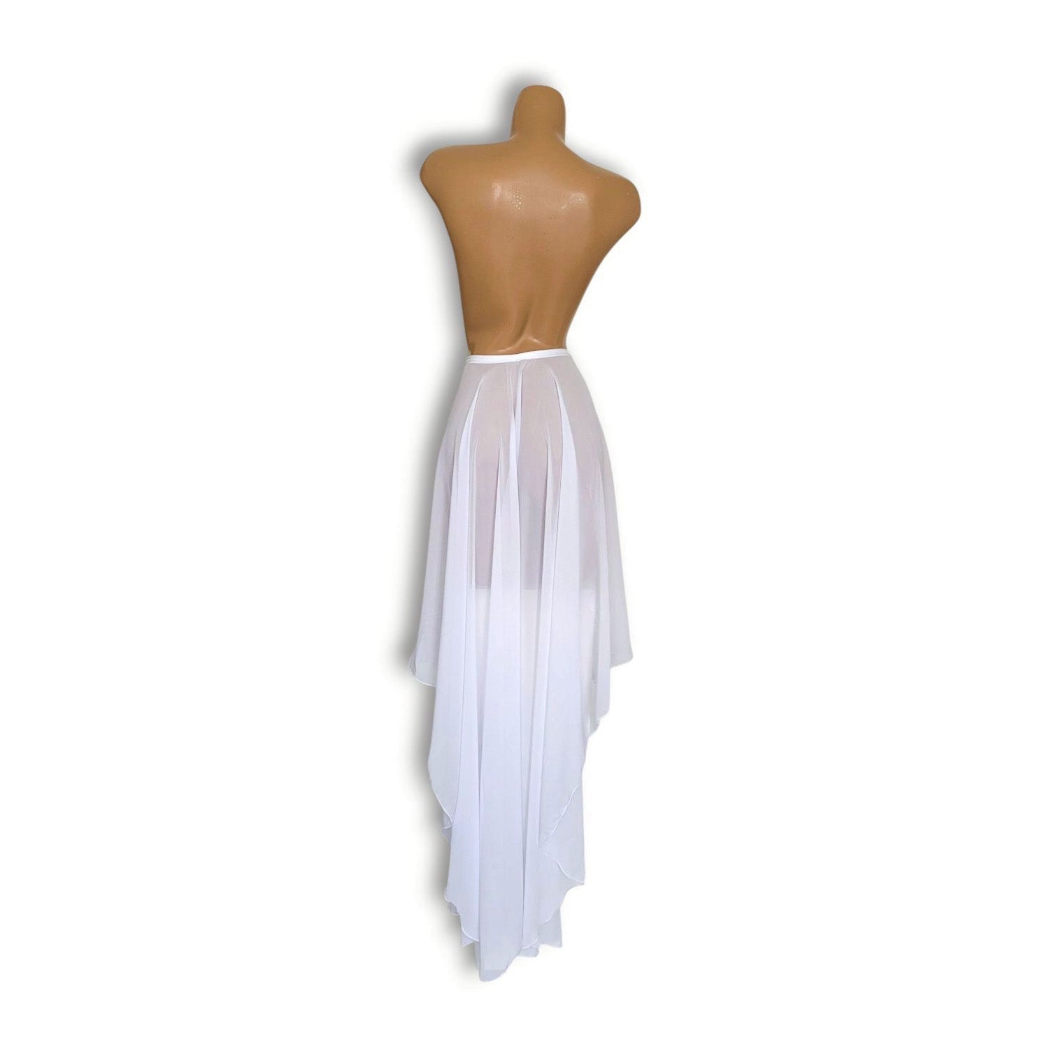 可憐さとエレガンスを兼ね備えた、美しい白のシフォンスカート。軽やかで柔らかな素材感が、動くたびにふんわりと揺れ、ステージ上でも優雅な印象を演出します。無駄のないシンプルなデザインは、どんなコスチュームとも相性が良く、幅広いスタイリングに活躍する万能アイテムです。