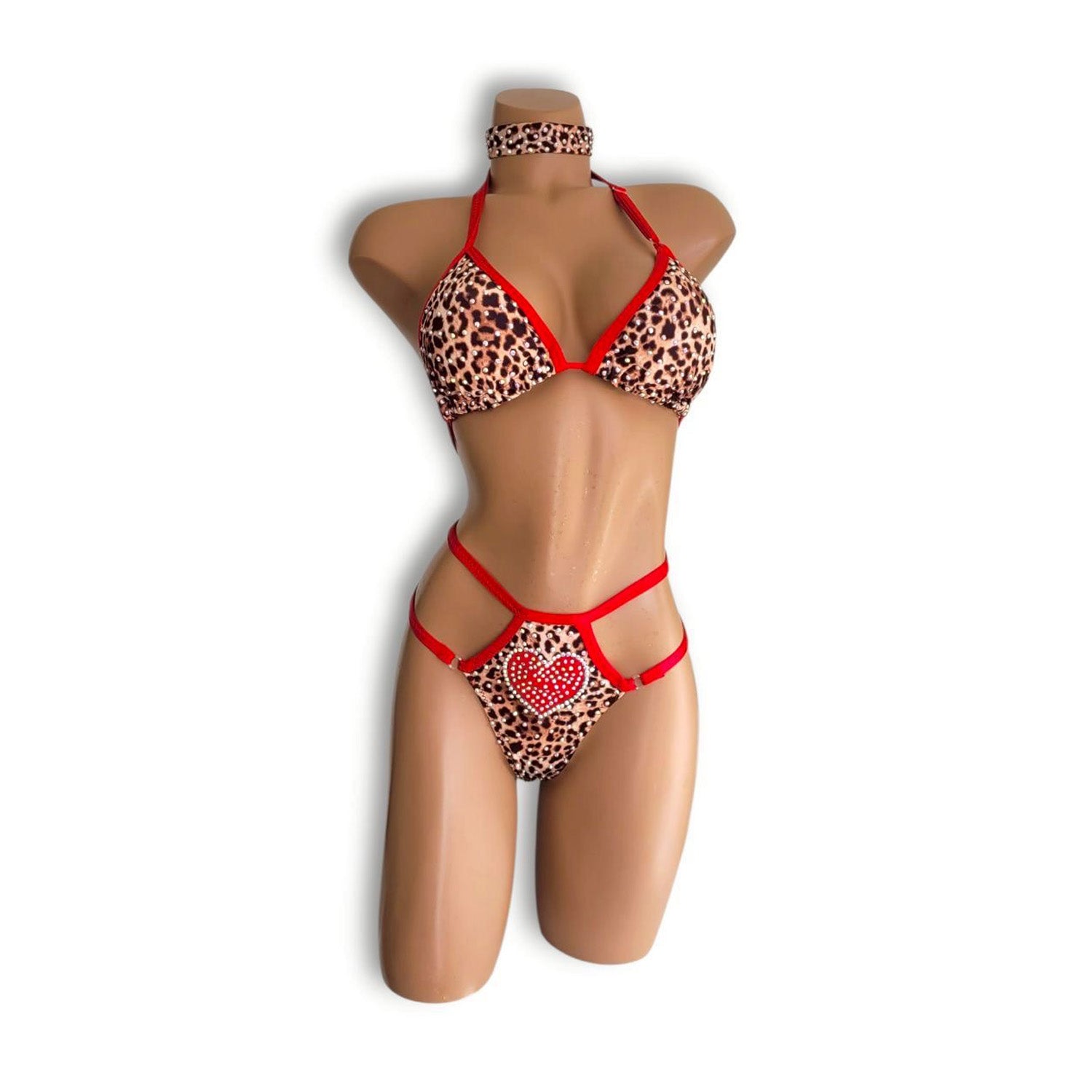 情熱的なレッドとワイルドなレオパード柄。視線を奪う最強の組み合わせが、ステージに圧倒的な存在感をもたらすビキニセットです。柔らかく伸縮性のあるレオパード生地は、肌あたりも良く快適な着心地。動きにフィットするため、ダンスやパフォーマンス中でもストレスなくお使いいただけます。